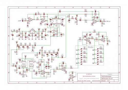 Este é um pedal que, embora nos leve a crer que é um clone do Boss DC-2 Dimension C como o Behringer CC300, não é bem assim... Conforme o esquema que estou levantando e imagens como deste site, pelo que parece, a tc electronics/Behringer também curtiu o conceito de se basear-se no DC-2 da boss mas poupando uma grande quantidade de componentes. Como um velho projeto meu que postei recentemente aqui mas já estava disponível em outro site a alguns anos. Claro que não é a mesma coisa mas o conceito geral é coincidentemente idêntico. Também os controles, assim como no Behringer CC300, agem de forma um pouco diferente do Boss DC-2 (o tradicional pelo menos, não sei sobre a versão WAZA) e conta com bem mais opções, inclusive. É um chorus com sonoridade bem diferenciada e com leve toque de flanger e que vale a pena experimentar. Mas se você quer um chorus diferenciado e com sonoridade grandiosa em um conceito semelhante (mas sem o "toque" de flanger), recomendaria o tc electronic JUNE 60. Quando eu terminar de levantar o esquema o postarei aqui. 3rd Dimension.pdf